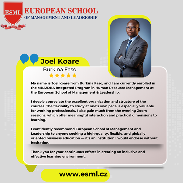 Disclaimer: European School of Management & Leadership (ESML) is a private business school based in the Czech Republic. Our MBA, BBA and DBA are professional/private degrees designed for career development in unregulated business and management professions. They are not state-recognized academic degrees in the Czech Republic. Recognition in other countries or by employers, professional bodies or authorities is not automatic and depends on their local rules and discretion.